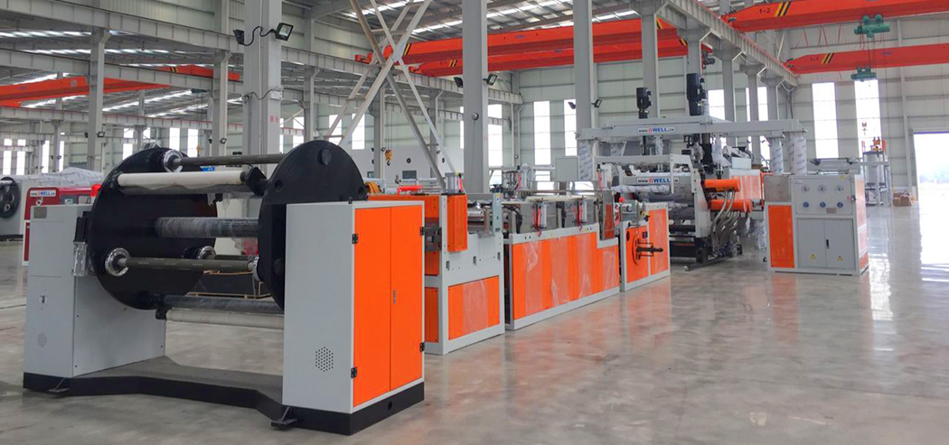 PET單螺桿(結晶干燥)、APETG、PETG、CPET 單層及多層共擠片材生產(chǎn)線是目前國內技術先進、工藝成熟、設備穩(wěn)定的片材生產(chǎn)線之一,與國內同類設備相比,綜合效能提高30%; 只需要結晶不需要干燥,是金韋爾公司新研制的高品質PET片材機組,其優(yōu)點:低能耗、工藝簡單、設備使用維護方便等特點。